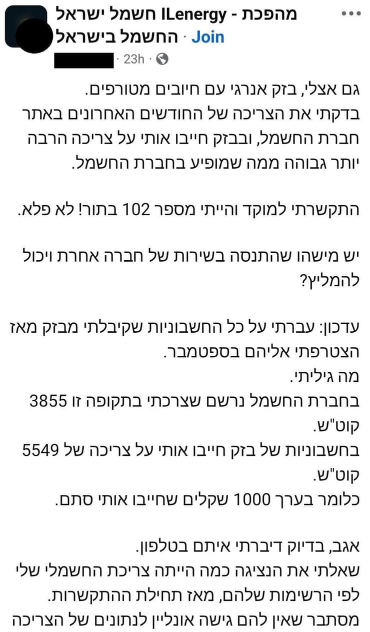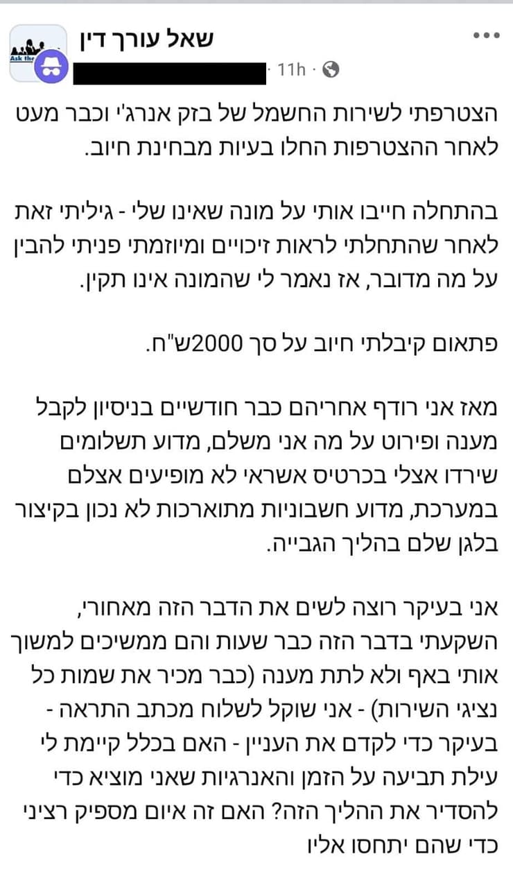 בקבוצת "שאל עורך דין" כתב אחד הלקוחות: "הצטרפתי לשירות החשמל של בזק אנרג'י וכבר מעט לאחר ההצטרפות החלו בעיות מבחינת חיוב. בהתחלה חייבו אותי על מונה שאינו שלי - גיליתי זאת לאחר שהתחלתי לראות זיכויים ומיוזמתי פניתי להבין על מה מדובר, אז נאמר לי שהמונה אינו תקין. פתאום קיבלתי חיוב על סך 2,000 שקל.