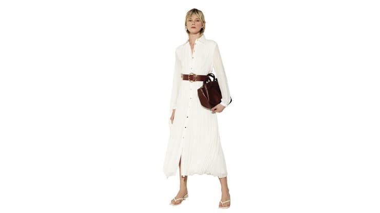קסטרו מציגה לאביב שמלת פליסה ארוכה ולבנה. מתאימה ליום ולאירועים חגיגיים. לאותן מטרות אפשר להגיע עם מכנסי ג'ינס בגזרה גבוהה WIDE LEG. רגל מתרחבת עם תפר חיתוך בגובה ברך וסיומת גזורה.