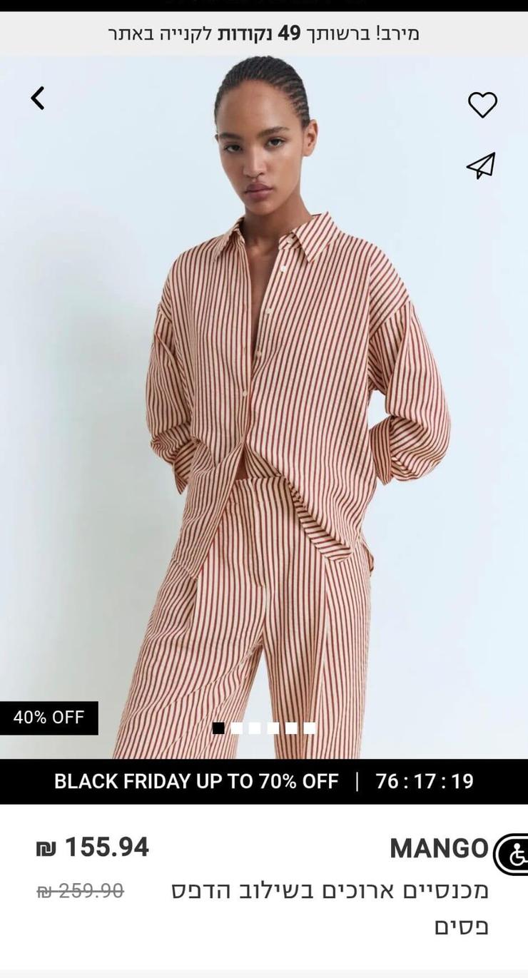 מפוקס נמסר בתגובה: "בימים אלה מנגו מציעה לצרכנים בארץ מבצע בלאק פריידי אטרקטיבי של 40% הנחה על הקולקציות של המותג, ו-10% הנחה נוספים ללקוחות כרטיס אשראי דרים קארד VIP. כמו כן, לאורך כל השנה מנגו מציעה מגוון רחב של הנחות מתחלפות, ובנוסף הצרכנים נהנים ממבצעי מועדון דרים קארד, צבירת נקודות וכן שימוש בהנחות של מועדוני צרכנות".