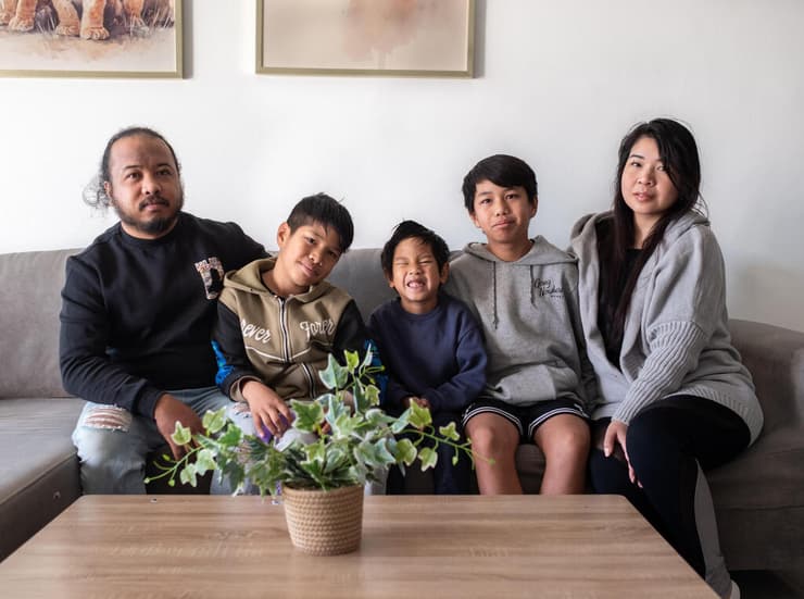 בצילום: אן (35), ג'וני (38), עמנואל (12), לאון (10), ליאם (5)