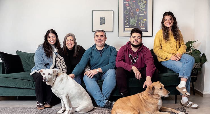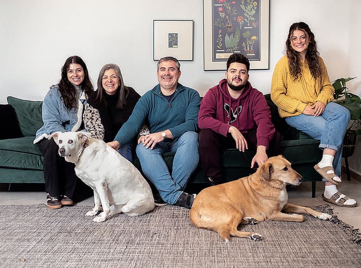בצילום: לימור (51), קלינט (52), טל (25) נשואה וגרה בבאר־שבע. לומדת עבודה סוציאלית, בן (23) השתחרר מהשריון ועובד בשדה התעופה ולומד אילוף כלבים וכלבנות טיפולית, שי (18) במכינה.