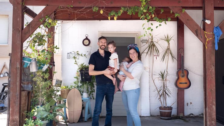 בצילום: אורי (37), מיכל (36), מעין (שנתיים וחצי) ועומר (3 חודשים).