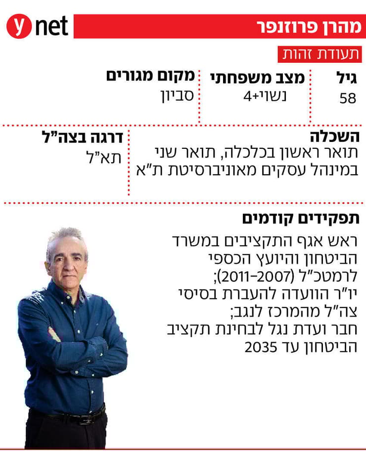 מהרן פרוזנפר, יליד איראן, בן 48, נחשב למינוי מצוין לתפקיד ורבים מבכירי המערכת הכלכלית ברכו על ההחלטה למנותו. פרוזנפר, נשוי ואב לארבעה, תושב סביון, הוא בעל תואר ראשון בכלכלה ותואר שני במנהל עסקים מאוניברסיטת ת"א והשתחרר מצה"ל בדרגת תת אלוף. הוא כיהן בין השנים 2007 ל-2011 כראש אגף התקציבים במשרד הביטחון וכיועץ הכספי לרמטכ"ל, רא"ל גבי אשכנזי. הוא שימש גם כיו"ר הוועדה להעברת בסיסי צה"ל מהמרכז לנגב. ב-2024 היה חבר "ועדת נגל" לבחינת תקציב הביטחון עד 2035.