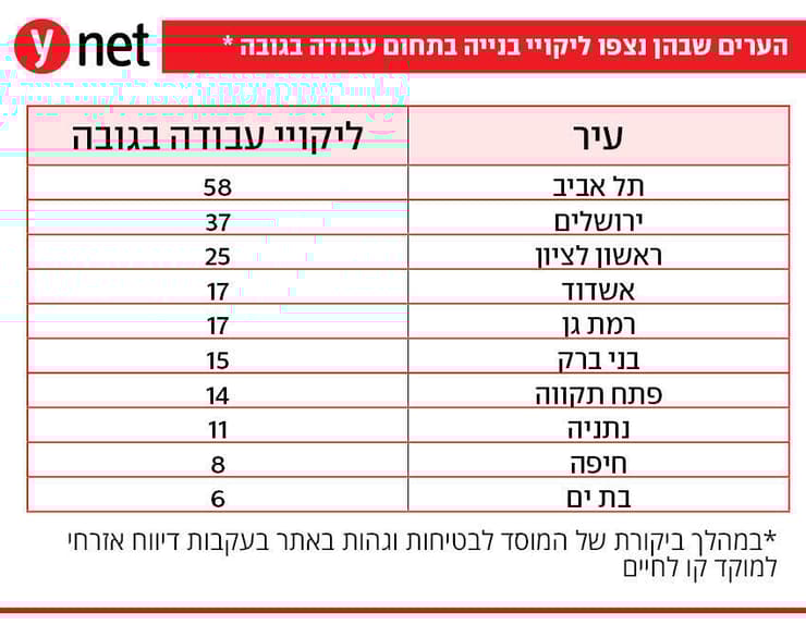 ההפקרות בענף הבנייה: מרבית ליקויי הבטיחות בענף, המהווים את מוקד הסיכון המרכזי, נובעים מעבודה מסוכנת בגובה ומחסור במנהלי עבודה - כך עולה מדוח לסיכום שנת 2025 של המוקד הלאומי "קו החיים" במוסד לבטיחות וגיהות (מוס"ל) שהגיע לידי ynet. רק בשבוע האחרון נהרגו שלושה פועלים בתאונות עבודה באתרי בנייה.