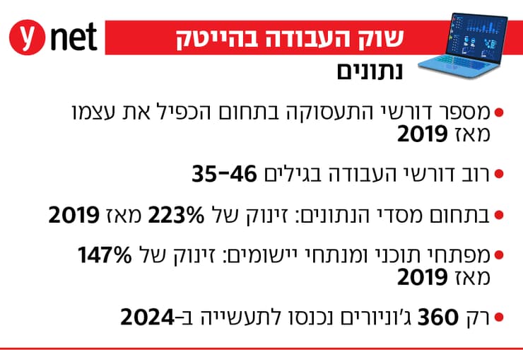 אלה לא רק סיפורים אישיים על תהליכי המיון המתסכלים. גם הנתונים מספרים סיפור דומה: נתוני שירות התעסוקה שפורסמו הקיץ מציירים תמונה מדאיגה – מספר דורשי התעסוקה בתחום הכפיל את עצמו ביחס ל-2019, וזינק ב-21% ביחס לתחילת המלחמה. לדברי עו"ד עינבל משש, מנכ"לית שירות התעסוקה, "המספרים צריכים להדיר שינה מעינינו". לפי הפרסום, עיקר דורשי העבודה משתייכים לקבוצת הגיל 46-35 - קרוב לאמצע החיים בעבודה. עוד מצוין בפרסום כי רוב דורשי העבודה פוטרו, ולא התפטרו.