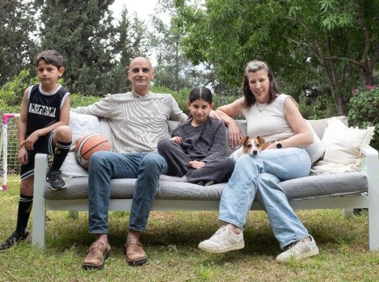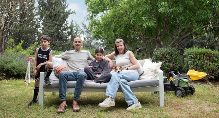 בצילום: איתמר (42), ליטל (40), רונה (9), ינאי (6 וחצי) והכלב ג׳ק.