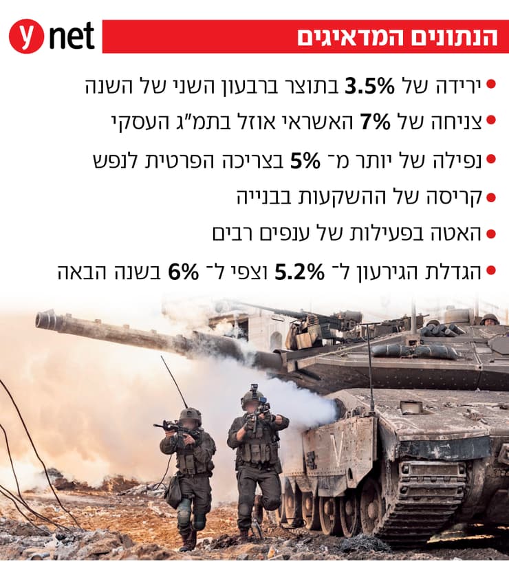 מבצע מרכבות גדעון, שגם על פי בכירים בצה"ל לא היה הצלחה מסחררת, עלה למשק 25 מיליארד שקל, וגיוס מסיבי של מילואים יצריך 11 מיליארד שקל נוספים בחודש. התקציב כבר נפרץ בשל ההוצאות במבצע עם כלביא, המשך המלחמה בעזה ומימון המפונים והנפגעים בכ-31 מיליארד שקל, וצפויה פריצה נוספת בתקציב עד סוף השנה. כל זאת בנוסף להקצאת הסיוע ההומניטרי לעזה בעלות כוללת עד כה של 2.2 מיליארד שקל, וכיבוש עזה יצריך לפחות 4 מיליארד שקל נוספים.
