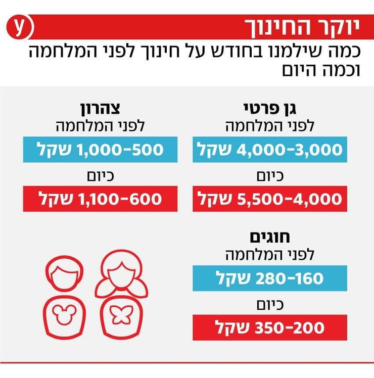 עלות המחיה בישראל שוברת שיאים, וכבר לא מדובר רק במחיר המזון בסופר או בשכר הדירה. בשנתיים האחרונות, מאז פרוץ המלחמה, גם עלויות החינוך גדלו ומשפחות עם ילדים קטנים נאלצות לשלם היום יותר אפילו עבור תוכניות מסובסדות על ידי המדינה, וכמובן עבור מסגרות חינוך פרטיות או אלטרנטיביות.