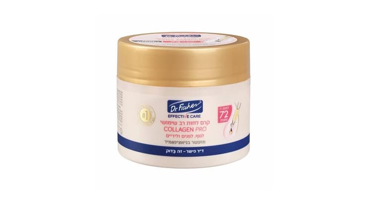 קרם לחות לפנים ולגוף, EFFECTIVE CARE קולגן פרו של ד"ר פישר, מועשר בניאצינאמיד, ומשלב ויטמינים E ו־B5. לאנטי אייג'ינג ולמראה עור חלק יותר.