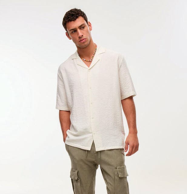 רנואר גברים מציעה חולצת גלורי מלאנג' מכופתרת קצרה עם טקסטורה וצווארון שלבים קטן.