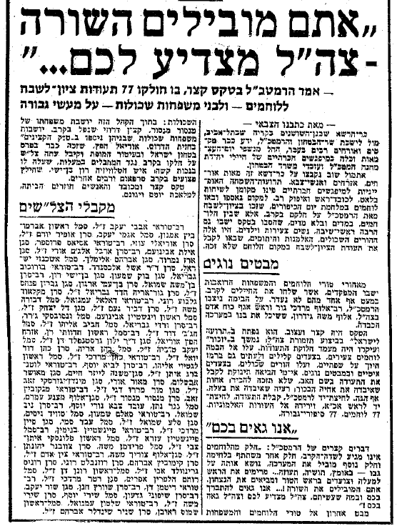 "אני נזהר מאוד. נגיד ככה, אני משתדל לא לתת עצות למקבלי ההחלטות, זה לא תמיד הולך לי. לפעמים יש שיחות רקע, אתה יושב עם אלוף, או אפילו עם הרמטכ"ל, והוא אומר, 'מה אתה חושב?' אבל המלחמה משנה את פניה. הניסיון שאני צברתי בשנות ה-70 לא רלוונטי למה שקורה היום.