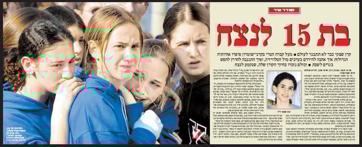 הפעם הראשונה, לפי הארכיון, הייתה ב-16 בפברואר 2002. מחבל מתאבד מתפוצץ ליד פיצריה ביישוב קרני שומרון. בפיצוץ נהרגו נחמיה עמר וקרן שצקי, שניהם בני 15. את נשלחת להלווייתה של קרן ז"ל, וחוזרת עם כתבה ראשונה, בסדרה ארוכה למרבה הצער, של סיפורי אבל ומשפחות מרוסקות. "בת 15 לנצח. גבוהה, רזה, שיער ארוך, עיניים כחולות וחיוך שמח תמיד. כל מי שספד אתמול לקרן שצקי תיאר את החיוך הקורן הזה שממס כל קרח, ותיאורי החיוך המדבק ליבו את מעין הדמעות". מעין הדמעות פעל גם אצל הקוראים.