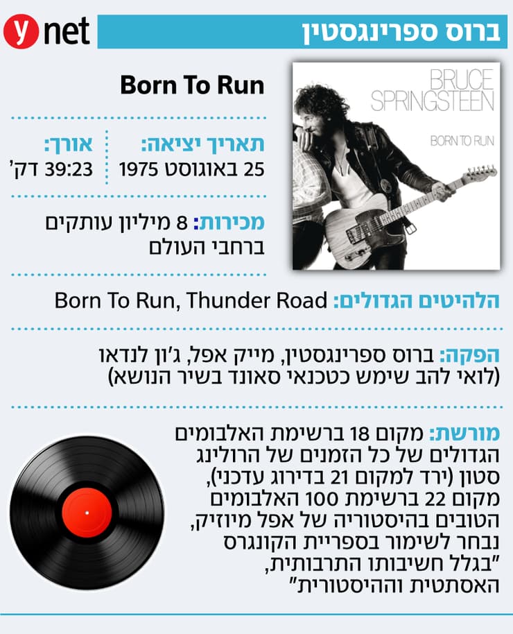 ספרינגסטין הוציא עוד כמה אלבומים אדירים בהמשך, אך ההתעקשות שלו לעשות את Born to Run כך, השתלמה, ובגדול, וכך גם לגבי החברויות שהוא גיבש סביב הלהקה שלו שהפכה למשפחתו השנייה. הוא והאי-סטריט בנד בראו ושיכללו לאורך השנים את אחד ממופעי הרוק היותר משלהבים שיש - כזה שלוקח שירי אולפן עמוסי תפקידים והופך אותם לחוויה כמעט חוץ-גופנית בקונצרט חי שנמשך שלוש שעות ויותר. העובדה שהאיש שיחגוג בחודש הבא יום הולדת 76, עושה זאת גם היום - היא פלא. אבל כנראה שמי שנולד לרוץ, לא באמת מסוגל לעצור גם אחרי חצי מאה.