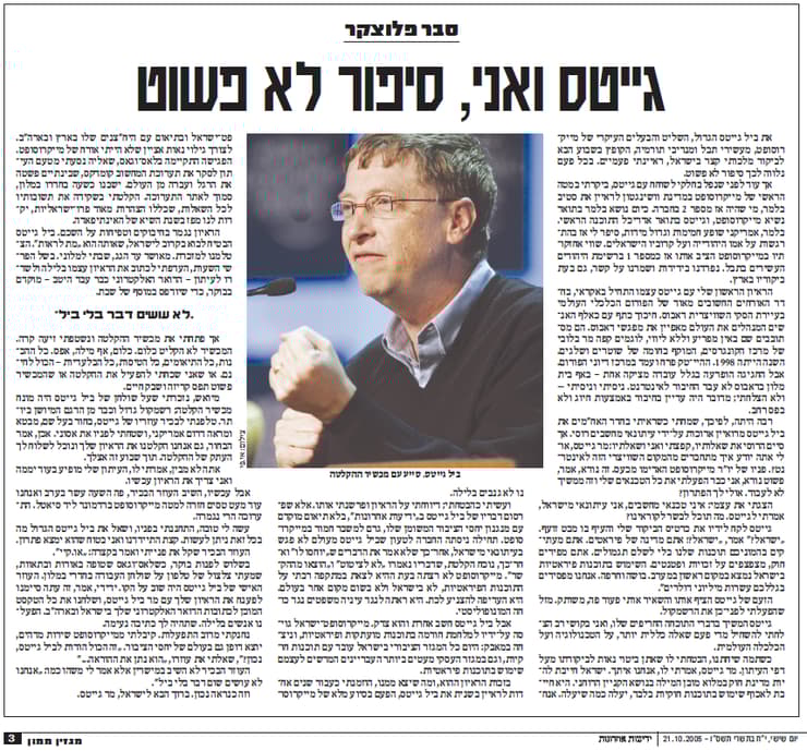 "בסוף הוא הזמין אותי ללאס וגאס, לתערוכה של הייטק, שם ראיינתי אותו כנשיא מיקרוסופט. אנשים לא יודעים עד כמה הוא היה פרו-ישראלי, אין להם מושג. הוא עברת את כל התוכנות ואפשר היה לכתוב בעברית יפה. זה לא היה מובן מאליו, הוא לא הרוויח על זה גרוש, אבל הוא באמת היה ציוני. היה אמריקאי ציוני אמיתי. אני אומר שהיה, כי עכשיו הוא כבר בתפקידים אחרים לגמרי".