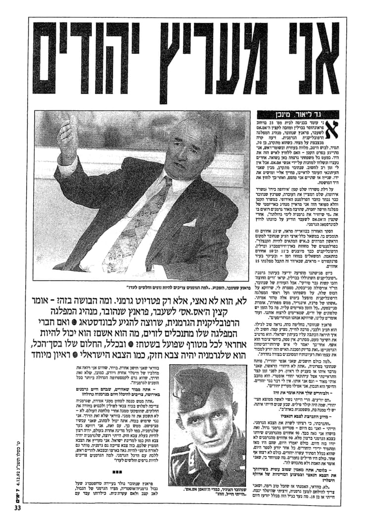 "כל הדרך חשבתי אם ללחוץ לו את היד. האמת, אני חושב שלא לחצתי לו בסוף, אבל אני לא בטוח לגמרי היום, כי רציתי את הריאיון. כל משפחתי נרצחה על ידי הנאצים, אולי הוא היה אחד מהם, אי אפשר לדעת. הוא היה קצין אס.אס, והוא היה ראש מפלגת ימין.