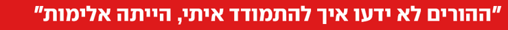 "עימתי אותה עם זה. מבחינתה זה היה סיפור גבורה של איך היא הגנה על הבת שלה כמו לביאה מול היועצת שסיפרה עליה שקרים. אבל אי-אפשר היה לפספס אותי. רואים אנורקסיה, רואים שהאדם הולך כפוף מרוב רזון ותשישות. אמא שלי פשוט לא הייתה מסוגלת להתמודד עם זה. היא לא יכלה להכיר בזה ואולי גם לחשוב מה זה אומר על ההורות שלה. שנים אחרי, אמא שלי הלכה לטיפול ועשתה עבודה עם עצמה. היום אנחנו הכי קרובות שהיינו אי פעם".