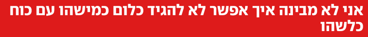 "מה שמפרק אותנו זה שפוליטיקאים עושים לנו כל הזמן הפרד ומשול. אני לא רואה איך זה מסתיים, כי אחרי 7 באוקטובר את מבינה שאין גבול לציניות. חשבת שיגידו 'הייתה שואה, בואו נשים פה גבול'. אנחנו צריכים להתחיל להסתכל על פוליטיקאים שמדברים נגוע ולהגיד 'זה מה שיהרוג אותנו פה'"
