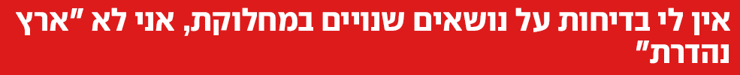 עדי אשכנזי דיברה נורא יפה. היא חיממה את ליבי. כתבתי לה שהיא מדהימה וכל הכבוד לה. בטח בימים כאלה, שלא פשוט להביע דעה. כל הזמן מציעים לי לבוא לכנסת לדבר. אבל צריך להתלבש יפה, להיראות טוב, להיות רהוטה. אני מפחדת להתבלבל שם. אבל אולי עוד אעשה את זה.