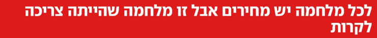 והמחירים, מה איתם? מתים לנו כל יום, חיילים צעירים. מיטב בניה של הארץ הזו.