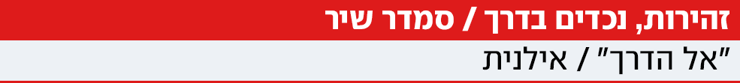 ואז, כשכולם סוף־סוף יושבים, חגורים וכמעט מאושרים, אני לוחצת על הכפתור שמזמין את אילנית להצטרף לרכב. “ושוב נצאה אל הדרך”. שמרית אור ונורית הירש. מי לא מכיר. אמנם הקצב המקורי של השיר מתאים להליכה רגלית, לא להתקדמות על גלגלים, אבל אצלנו הוא מכונה “שיר נחום־תקום” מפני שלא משנה כמה עצירות מתוכננות ולא צפויות יהיו בדרך, בכל רגע נתון אפשר ללחוץ על הפליי ולהמשיך.