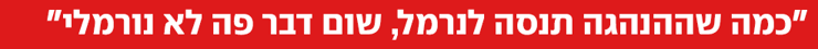 "הבעיה היא למעלה. אני לא לוקחת אחריות עכשיו על כלל האוכלוסייה של מדינת ישראל, אני רק רוצה להגיד שרוב הציבור זה אנשים נפלאים, אנשים שרוצים את אותו הדבר גם אם הדעות שלהם מנוגדות. יותר מזה, אני מאמינה שרוב הציבור יודע להחזיק שוני. יודע לקבל את זה שיש לידו מישהו שחושב אחרת, בלי לרצות עכשיו לשבור את הכלים. ומה שמבאס זה האחוז הקטן ששובר את הכלים, וכמובן ההנהגה שלנו, שבאמת, כמה שהם ינסו לנרמל, שום דבר פה לא נורמלי, וכמה שהם ינסו לעשות לנו ספין - האחריות היא שלהם. האחריות היא שלהם ביום שזה קרה והאחריות שלהם לתקן את זה".