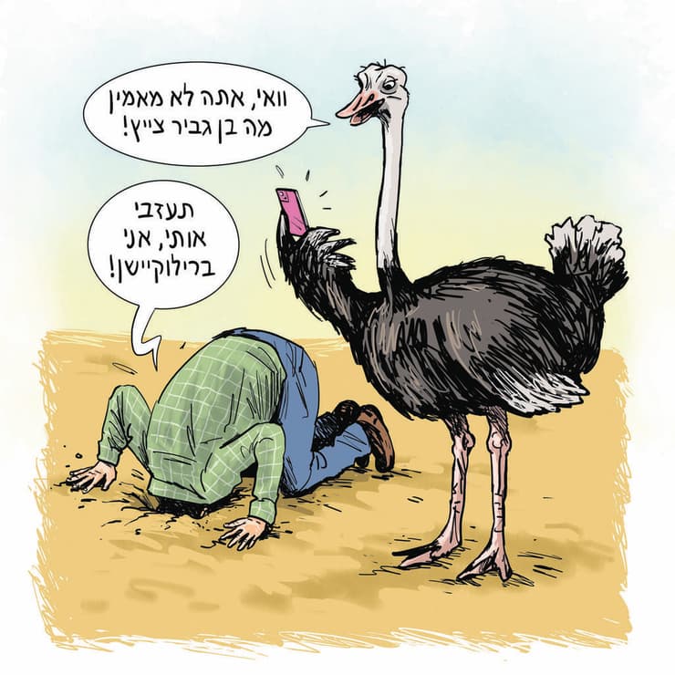 יש לי חברים שמדווחים שטכניקת ההישרדות העכשווית שלהם היא זרות כל הזמן; בלי חדשות, בלי הפגנות, בלי לקחת ללב, בלי לראות את מה שאמנם נמצא להם מול הפרצוף אבל הם מצליחים לבהות דרכו. יש לי חבר שממש קנה לעצמו טלפון נייד כשר, והוא מסתובב איתו. "זה כאילו כדי לצמצם שעות מסך, אבל זה גם ממש עושה לי טוב לא לדעת כל הזמן מה קורה".
