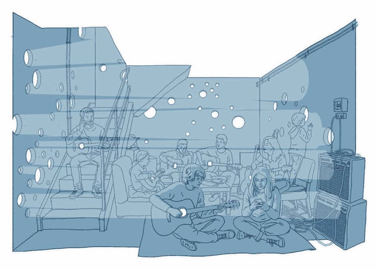 "היי, מתחשק לכם לשמוע שיר חדש?" שואל מישהו מהם את באי המקלט, כולל השכנות מהבניין, באמצע היירוטים. הוא אחד כזה שלא נפרד מהגיטרה. טוב, למי יש עצבים? לי לא. להם כנראה כן. אבל אני מקשיב, חייבים לגלות אורך רוח.