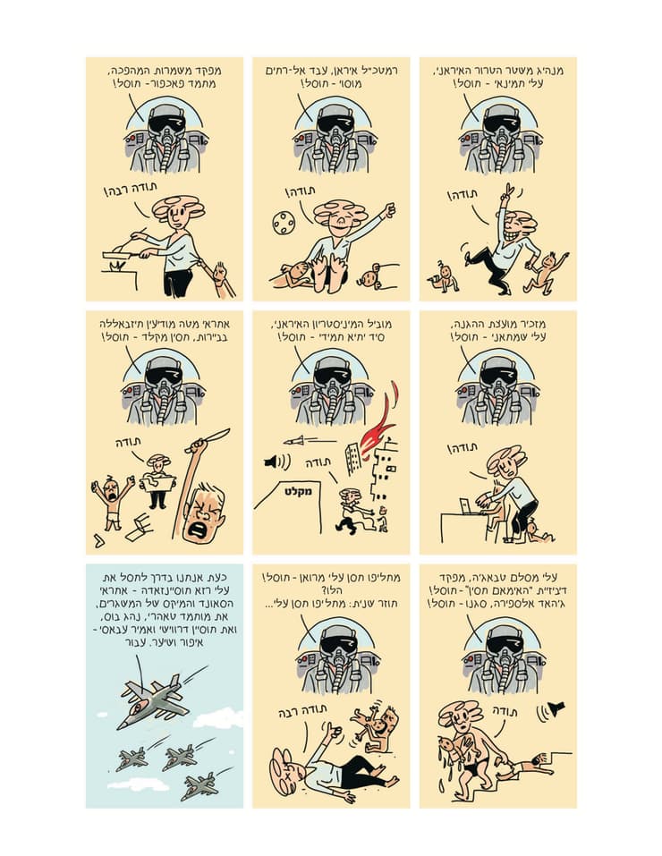 אני מסתכלת על רונן הקטן. הוא רועד מתחת לכיסא הכתר פלסטיק. מגוחך בעיניי שהוא מקבל את המציאות החדשה ומצטיין בה כל כך. מה הוא יודע, הטמבל הקטן, על איראן, על המלחמה, על קוממיות? כלום. הפעולות האוטומטיות נצרבו בו ביי פרוקסי, דרך אדוניו: התרעה. אזעקה. מרחב מוגן. פתיחת דלת. גינה. משחקים. פיפי. קקי. אוכל. לישון. וחוזר חלילה. אין לו יכולת קוגניטיבית להבין את הקשר בין הדרקון המיילל מהנייד לבין העתיד. יש לו בכלל עתיד, או שהמערכת הכלבית שלו היא הווה מתמשך? רגע, אני נבהלת, ואני? אני כן מבינה את הקשר? לי במערכת יש עתיד?