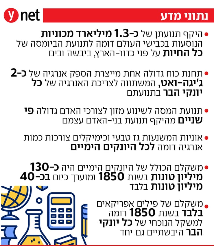במעבדתו של פרופ' רון מילוא, במחלקה למדעי הצמח והסביבה במכון ויצמן למדע, פיתחו מדד חדש המאפשר לכמת ולהשוות תנועה של מינים שונים ולנסות ללמוד מכך על מאזן הכוחות בין האנושות לבין יתר עולם החי. המדד שנקרא "תנועת הביומסה", מחושב כמכפלה של הביומסה הכוללת של מין מסוים, כלומר סכום המסות של כל הפרטים מאותו המין, במרחק הכולל שהם נעו בשנה אחת. הגדרת המדד החדש אפשרה לחשב לראשונה ברמה עולמית את התנועה הכוללת של בעלי-החיים ואחר כך להשוותה לזו של האנושות.