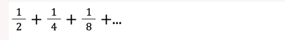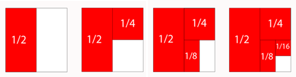 אפשר לפתור אותו כסכום של סדרה הנדסית, אבל יש גם דרך חזותית הרבה יותר פשוטה להבין מה קורה פה. חצי ועוד רבע (חצי ממה שנשאר) ועוד שמינית (חצי ממה שנשאר) וחוזר חלילה, זה בעצם הדבר הבא: