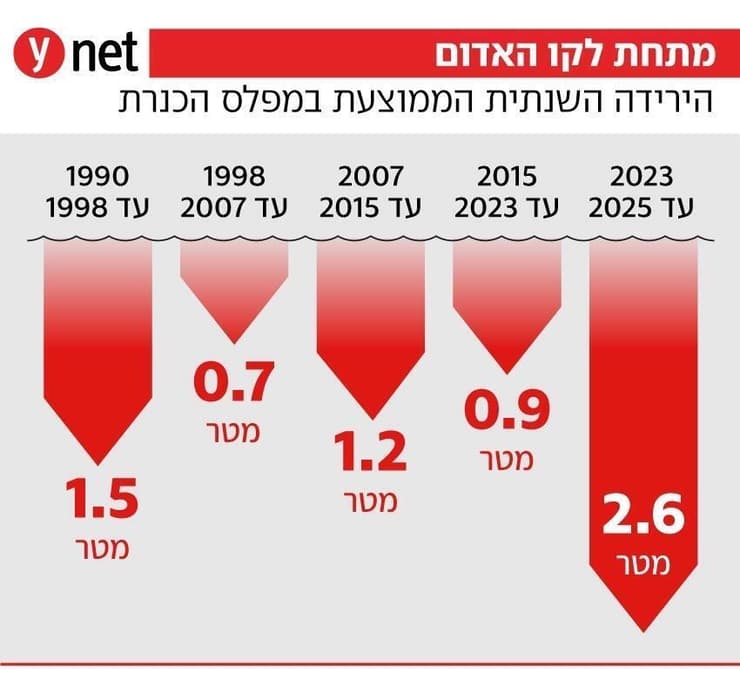מפלס הכינרת באיבוד המפלס הגבוה ביותר מאז 1980 - כשאפילו כניסת המים המותפלים לאגם לא מצליחה לשפר את המצב העגום, והמומחים ברשות המים מביעים דאגה נוכח הירידה התלולה במפלס, שעמד אתמול (יום ג') על מינוס 213.345 מטרים. המפלס עומד על 34.5 ס"מ מתחת לקו האדום התחתון.