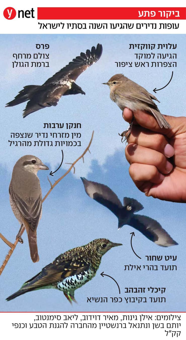 "הרוחות המזרחיות אפיינו את עונת הנדידה הזו והביאו לנו הרבה הפתעות", מסביר ירון צ'רקה, הצפר הראשי של קק"ל, "אנחנו רואים המון פפיונים זיתיים, הרבה יותר ממה שאנחנו רגילים לראות בסתיו רגיל, וגם הרבה יותר ציפורי עלווית כהה. והייתה גם עלווית קווקזית שראינו לפני קצת יותר משבוע – בפעם החמישית בכל ההיסטוריה בישראל. שלא לדבר על פצצה לא נורמלית בשם קיכלי זהבהב, שהגיע לקיבוץ כפר הנשיא ב-30 באוקטובר. הוא נצפה ותועד על ידי חבר קיבוץ ששלח את זה לחתן שלו, שהוא צפר, ואז כל צפרי ישראל רדפו אחרי הקיכלי הזה – שנעלם כאילו בלעה אותו האדמה".