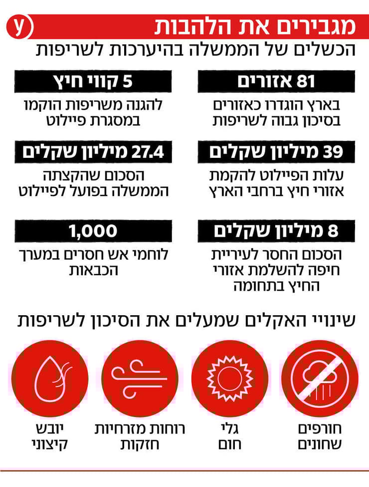זה קרה לפני קצת יותר מחצי שנה: גל שריפות נרחב התפשט בערב יום העצמאות באזור ירושלים ובכמה מוקדים נוספים ברחבי הארץ, עקב רוחות עזות ומזג אוויר שרבי. טקסים רשמיים וחגיגות בערים בוטלו, ויישובים רבים פונו מיושביהם מחשש שהאש תגיע לקו הבתים. למרבה הצער, אירועים כאלה עשויים לחזור על עצמם בישראל, אפילו בקרוב.