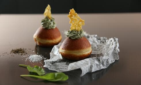- ממלאים את הסופגניות - ממלאים בשק זילוף את מלית התרד והפרמזן, ובאמצעות צנתר משונן מזלפים אל תוך הסופגנייה ומעליה.