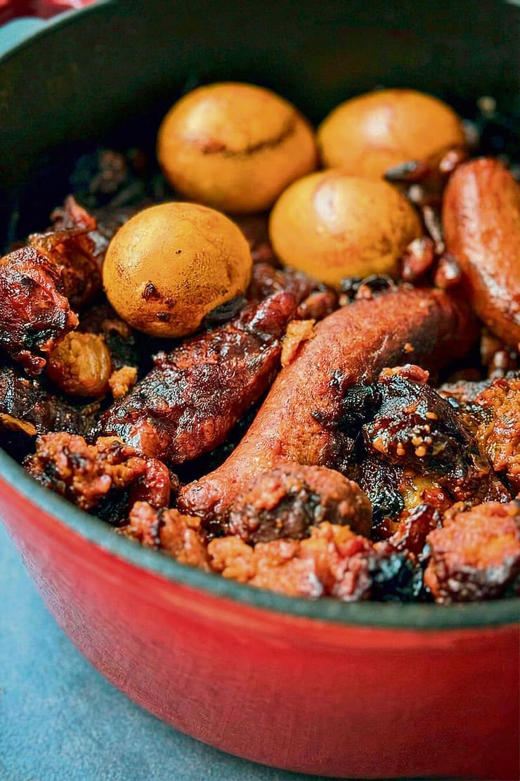 4. מביאים לרתיחה על הגז ומכניסים לתנור ב-120 מעלות ללילה שלם.