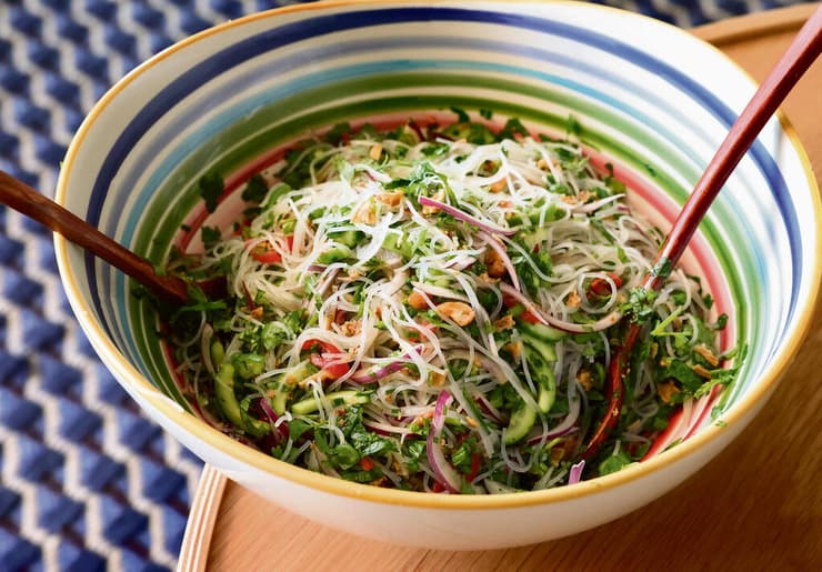 סלט שהוא שעטנז בין תאילנד, וייטנאם וישראל. יש בו את הקיק התאילנדי עם פלפל צ'ילי ועשבי תיבול, את אטריות השעועית האהובות מהמטבח הווייטנאמי, ואת עגבניות השרי הישראליות שמוסיפות מתיקות וגם מגירות את הנוזלים שלהן לסלט.