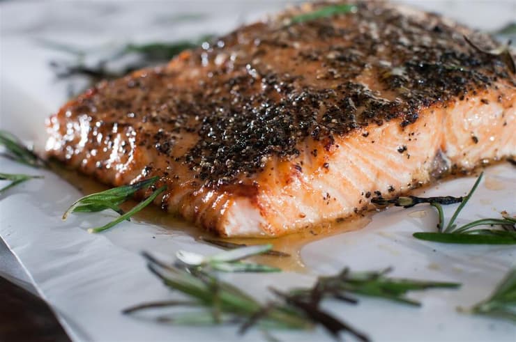 4 פרוסות דג סלמון במשקל 180 גר'