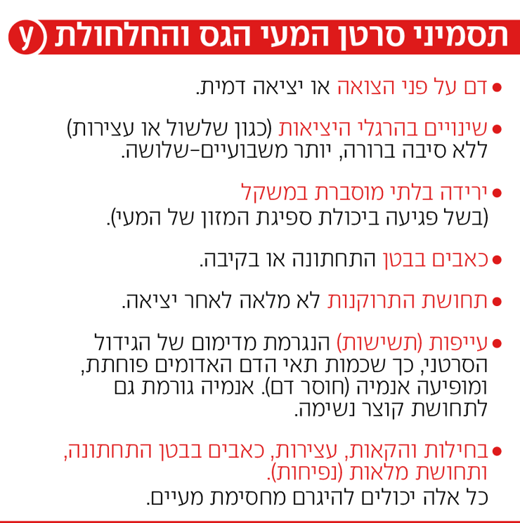 תסמינים שמצריכים פנייה לרופא משפחה: דם בצואה, כאבי בטן, שינויים בהרגלי היציאות