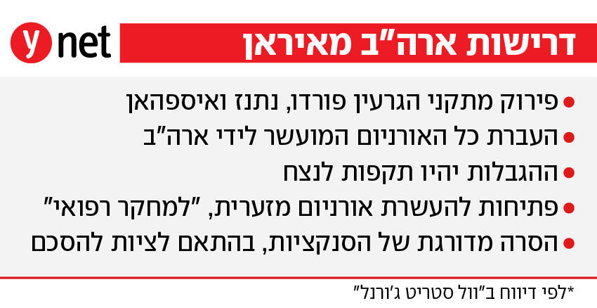 טראמפ הדגיש כי "איראן לא רוצה ללכת רחוק מספיק במו"מ, וזה חבל. אנחנו לא מרוצים מהשיחות. איראן רוצה להעשיר קצת (אורניום - לב"א, ד"א), אבל הם לא צריכים כשיש להם כל כך הרבה נפט. אני לא מרוצה מהשיחות". לדבריו, הוא לא מוכן לאף רמה של העשרת אורניום, "אפילו לא 20%". "הם לא מוכנים להגיד את מילת המפתח, 'לא יהיה לנו נשק גרעיני'", הוסיף. צפו בדבריו: