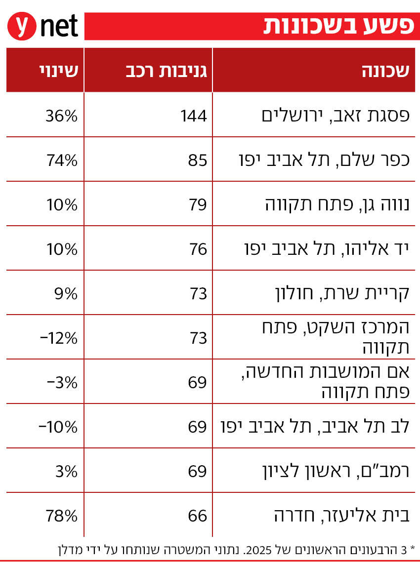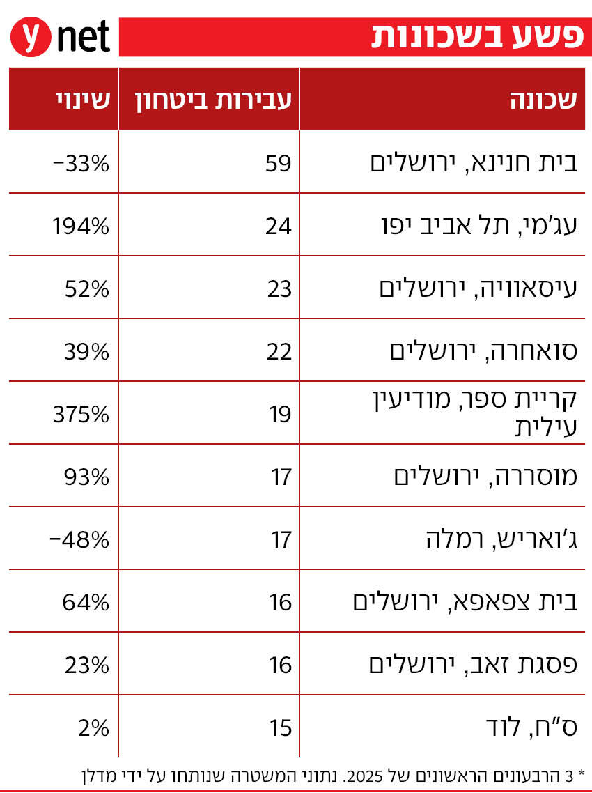 השיא השלילי במספר הרציחות נשבר מדי יום, אבל האלימות הגואה ממש לא שייכת רק לחברה הערבית. נתוני הפשיעה, שנחשפים היום ב-ynet אחרי הסתרה משטרתית שעדיין נמשכת, מראים זינוק מדאיג גם בעבירות נוספות - ומגלים מהן השכונות המסוכנות בארץ.