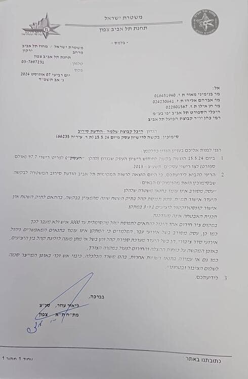 ממשטרת ישראל נמסר בתגובה: "היכלי הספורט ת"א-יפו ביקשו לחדש רישיון עסק לאולם הספורט כנדרש לפי צו רישוי עסקים, תשע"ג-2013. במסגרת תהליך זה, העסק נדרש לעמוד בתנאי פריט הרישוי כמפורט בחוק אשר נדרשים על ידי המשטרה ורשויות אחרות, וזאת בין היתר במטרה להבטיח את שלום הציבור ובטחונו, אולם בשלב זה אין הוא עומד בהם ולפיכך סורבה בקשתם לעניין חידוש הרישיון מטעם המשטרה".