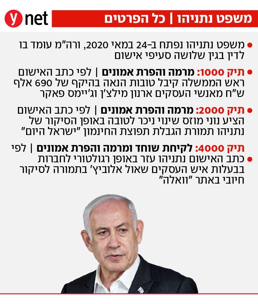 "מאחורי המשפט עומדים מניעים פוליטיים, והוא עוסק בסיגרים ובובת באגס באני", טען טראמפ. ynet עושה סדר במצב התיקים של ראש הממשלה, באישומים האמיתיים שבפניהם הוא עומד - ובסיכוי שנשיא המדינה יצחק הרצוג יעניק לו חנינה מבעוד מועד.