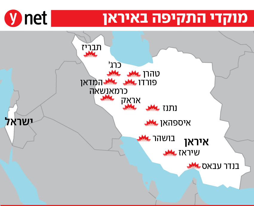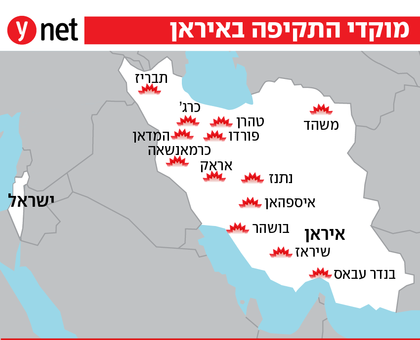 - חיל האוויר תקף עשרות מטרות טילי קרקע-קרקע במערב איראן, לפני המטח ששוגר הערב לישראל. טילים איראניים פגעו במבנים בחיפה ובמושב זבדיאל שבדרום, 5 נפצעו בינוני וקל.
