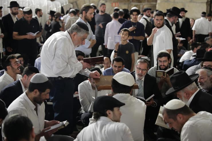 רבבות מתפללים הגיעו אמש (מוצאי שבת) לרחבת הכותל המערבי בירושלים, עם תחילת צום תשעה באב – והאבל על חורבן שני בתי המקדש ועל אובדן הריבונות היהודית בירושלים. המתפללים ישבו על הארץ לאות אבל, קראו את מגילת איכה, ואמרו קינות על חורבן בית המקדש.
