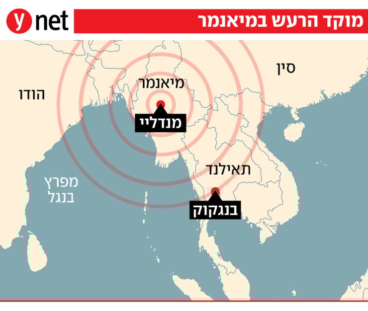 רעידת האדמה החזקה, נזכיר, הכתה אתמול בשעות הצהריים (לפי השעון המקומי) כ-10 ק"מ מתחת לקרקע סמוך למנדליי, העיר השנייה בגודלה במיאנמר. הרעש בעוצמה 7.7 היה החזק ביותר בעולם מאז רעידת האדמה הקטלנית שפקדה את טורקיה וסוריה ב-2023, והחזק ביותר שחוותה מיאנמר זה 100 שנה.