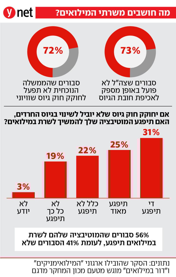 לאחר הפרסום ב-ynet הבוקר (שלישי) ולפיו בצה"ל בוחנים מודל שישנה את אופן גיוס המילואים, במטרה להקל על המשרתים, מילואימניקים סיפרו על הקושי שהם חווים במהלך השירות הארוך והסבבים הבלתי נגמרים אליהם הם נקראו מפרוץ המלחמה - וטענו כי גם המודל החדש שנבחן לא יפתור את הבעיה. לדבריהם, רק התאמת התוכניות המבצעיות לכוח האדם הקיים, או הרחבת שורות הצבא, יקלו על העומס והנטל הכבדים שהם נושאים על גבם.