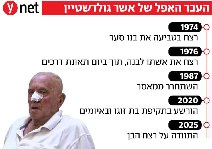 שינוי גרסה דרמטי: בית משפט השלום באילת האריך היום (רביעי) את מעצרו של אשר גולדשטיין בשישה ימים נוספים. הקשיש בן ה-88, שהתוודה בסוף השבוע שהטביע למוות את בנו סער לפני 51 שנה ליד אי האלמוגים במפרץ אילת, חזר בו מהמיוחס לו ושינה גרסה בחקירתו האחרונה. הקשיש, שנשא עונש מאסר בעקבות רצח אשתו לבנה ב-1976, טוען כעת כי לא ביצע את העבירה שבגינה התוודה ולא רצח את בנו.