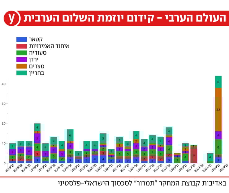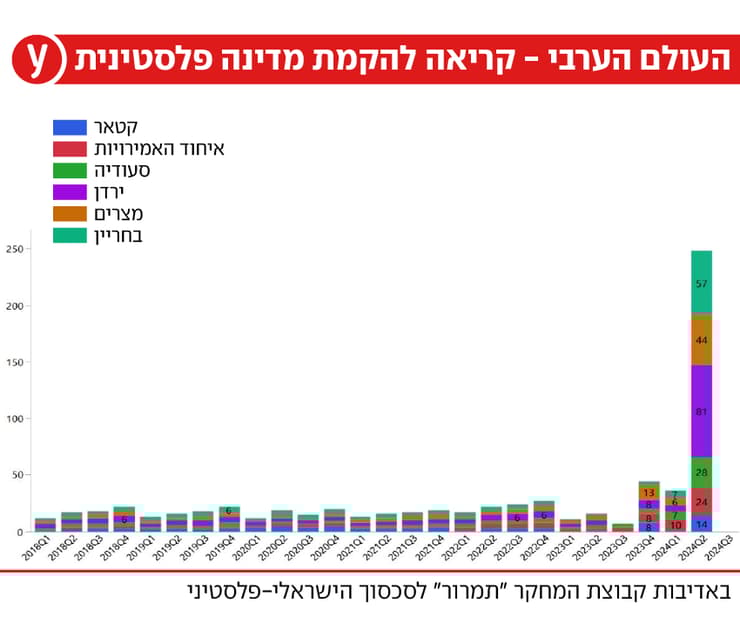 ויש גם מי שחקרה זאת לפרטי פרטים, באופן כמותי. ד"ר מורן זגה, חוקרת בכירה בקבוצת המחקר תמרור-פוליטוגרפיה החוקרת את הסכסוך הישראלי פלסטיני, ניתחה 548 מסמכים והצהרות מטעם מצרים, ירדן, סעודיה, איחוד האמירויות, קטאר ובחריין. היא זיהתה עלייה ברורה בקריאותיהן להקמת מדינה פלסטינית עצמאית, לצד קריאה להפסקת אש, למעורבות בינלאומית בסכסוך ולסיוע הומניטרי לרצועת עזה. כך זה נראה במספרים:
