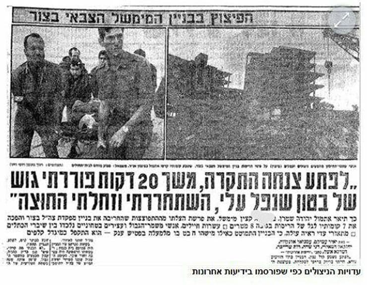 עם התארכות השעות שמעתי גם את איציק קליין מתחנן למים ואוויר, ואת קולו המרגיע של רוני הלוי המבטיח שבקרוב יבואו להציל אותנו, ומסביר שחייבים להחזיק מעמד. אבל שם, בין ההריסות בצור, חשבתי רק שאני הולך למות ובאופן מוזר גם השלמתי עם הסוף הקרוב במין שלווה קיומית. כאבתי והצטערתי רק על כך שבנותיי, ליאור בת השנתיים ורוני בת החצי שנה, יגדלו ללא אבא.