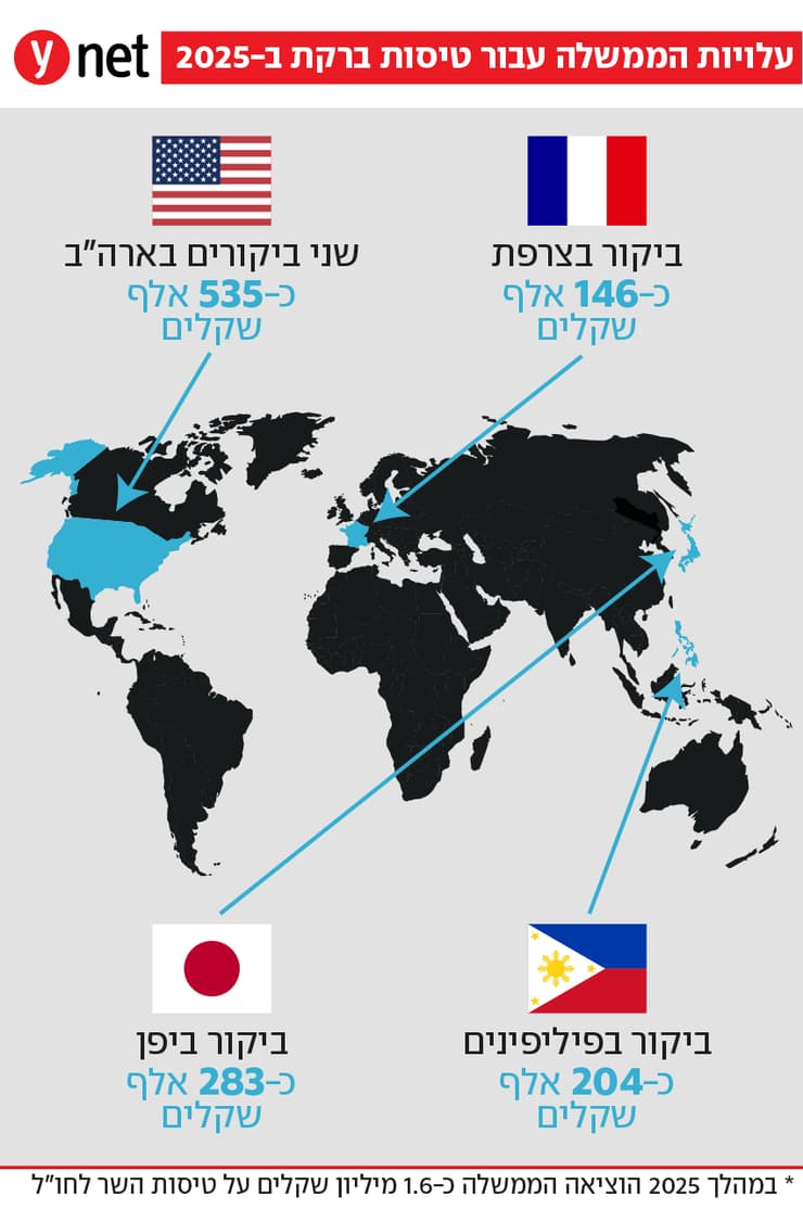 ברקת שב ואמר לא פעם כי את עלות הטיסה שלו – הוא משלם מכספו האישי – והדבר אכן נכון. אך מבט על הנתונים המלאים שנחשפו לבקשת התנועה לחופש המידע - חושף את העלויות הגבוהות ששולמו מכספי הממשלה עבור שר הכלכלה והמשלחות שמלוות אותו מעבר לים. במהלך שנת 2025 הגיעו התשלומים לסכום של כמעט 1.6 מיליון שקלים.